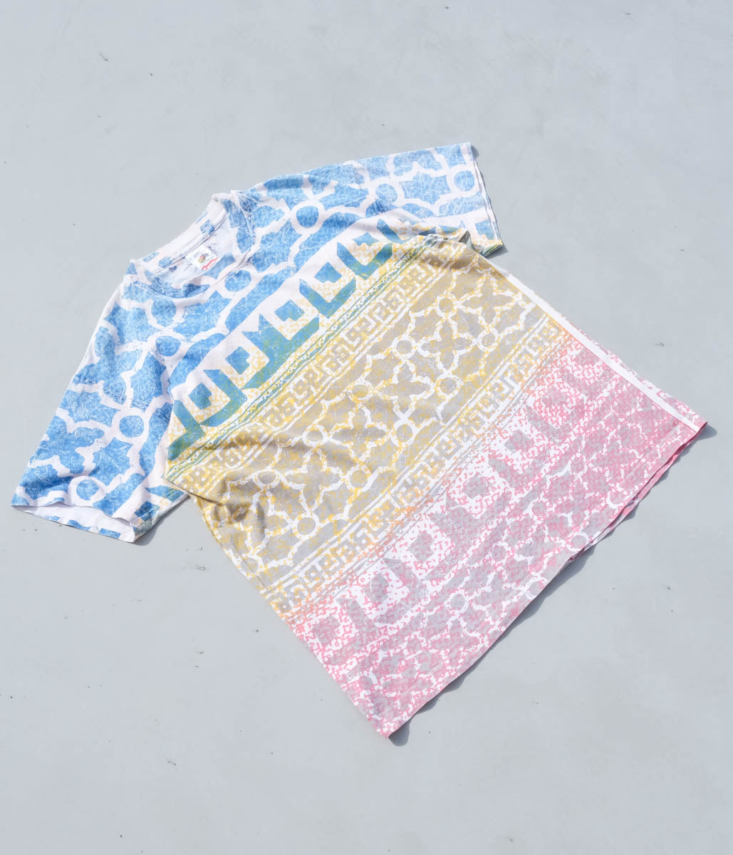 優しい色味の総柄で、とても雰囲気の良いTシャツです。