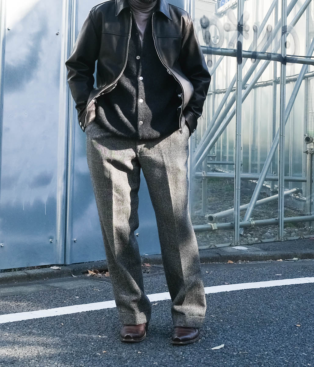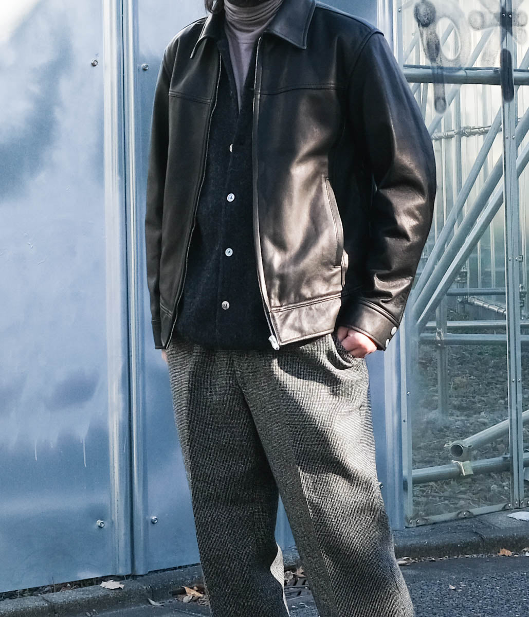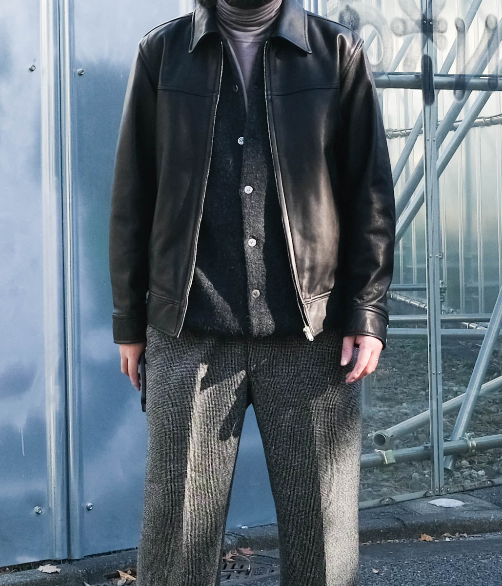 インナーにスウェットニットを入れやすく、アウターのインナーにもなるちょうど良いアイテム。