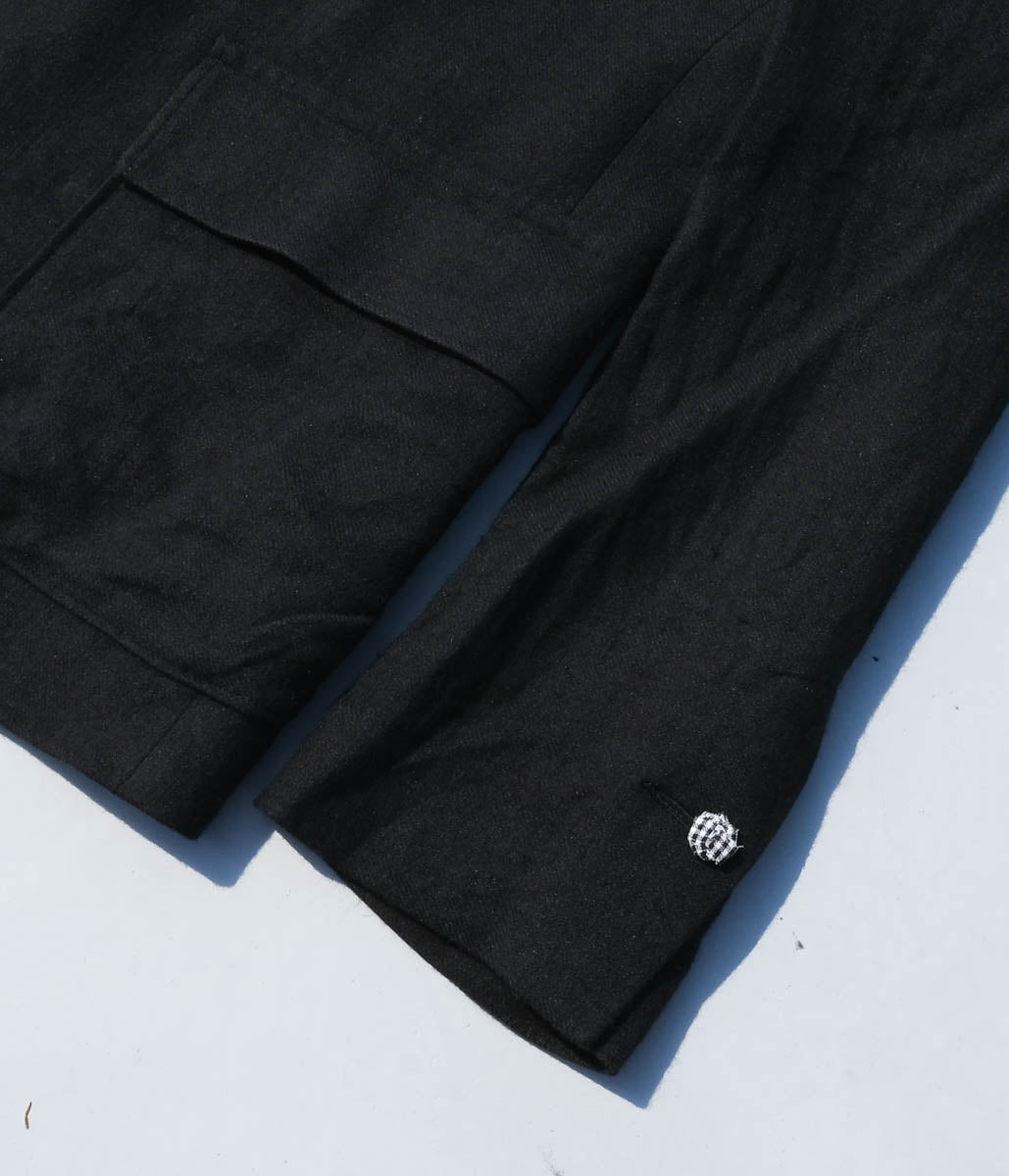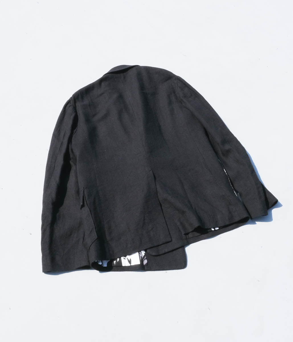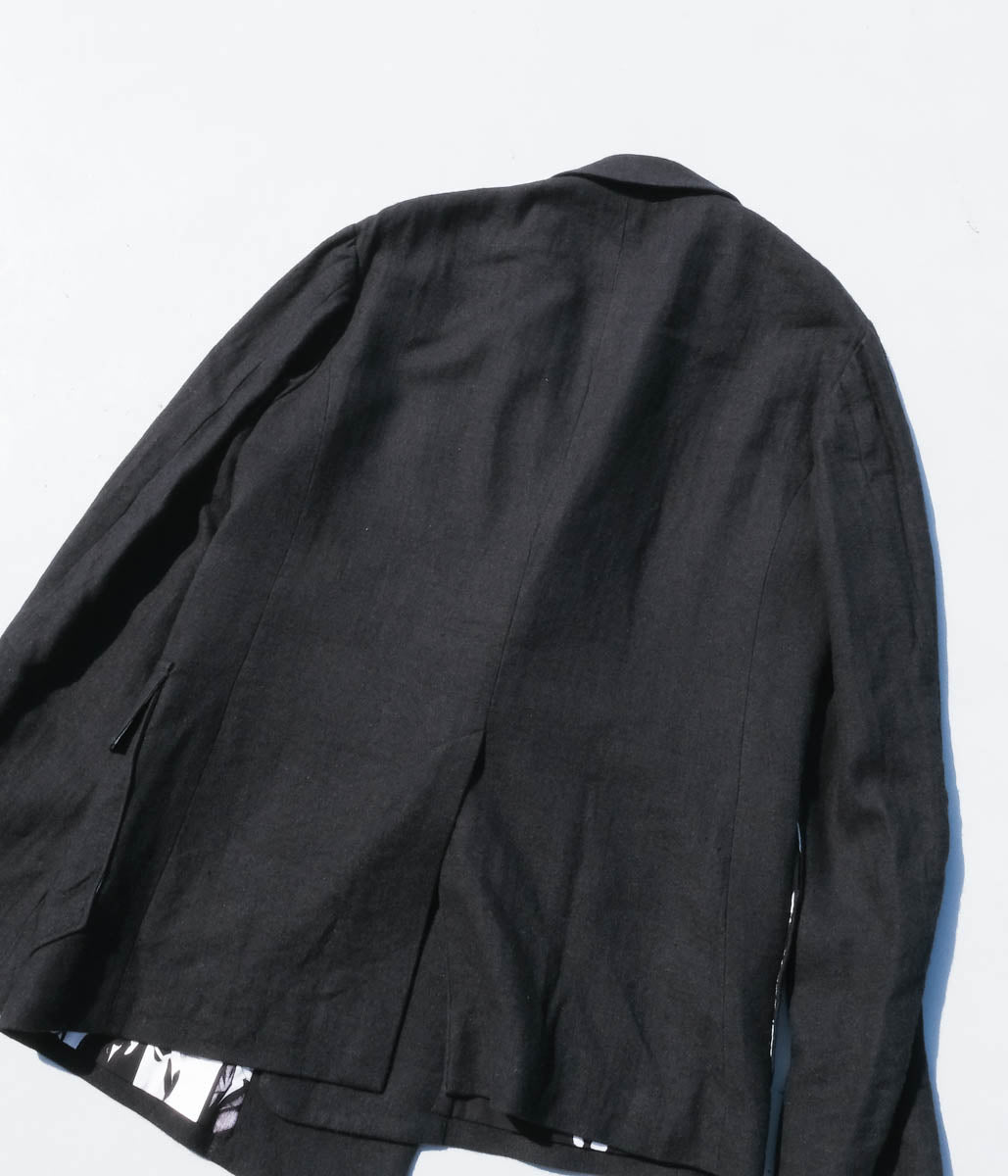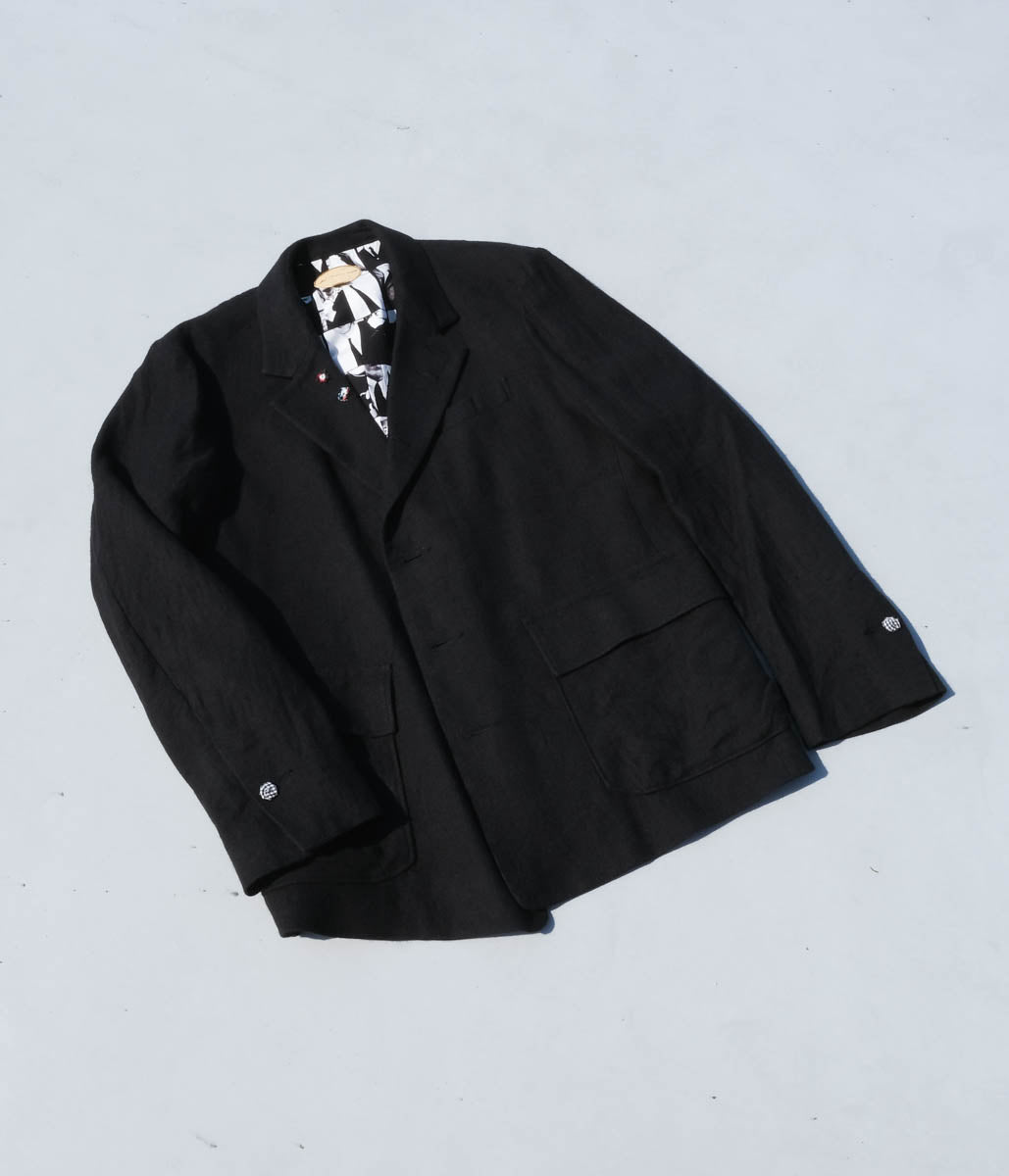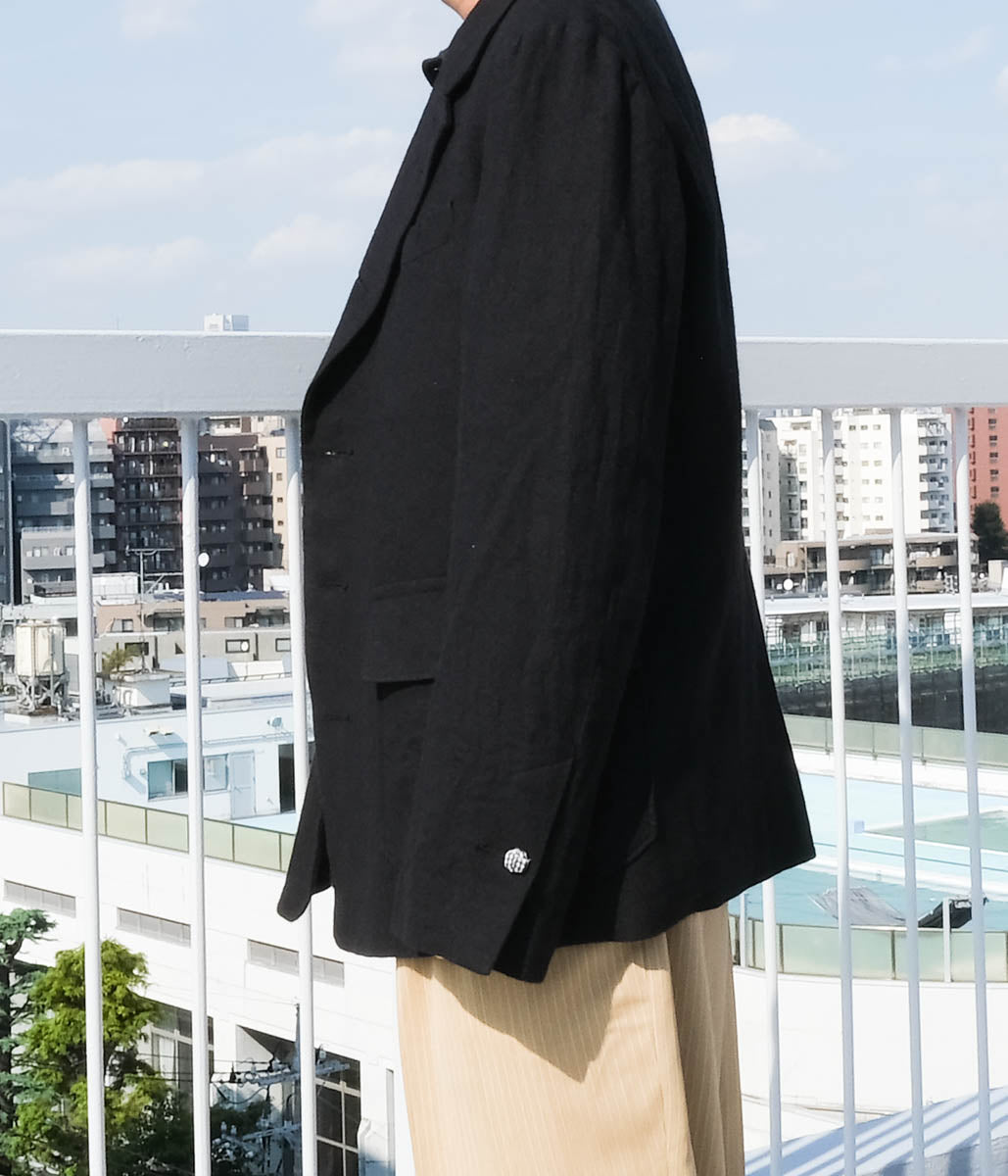素材は尾州で旧式の織機を使って少しあまめに織られた、ラミー、リネン、ウールの混紡素材。