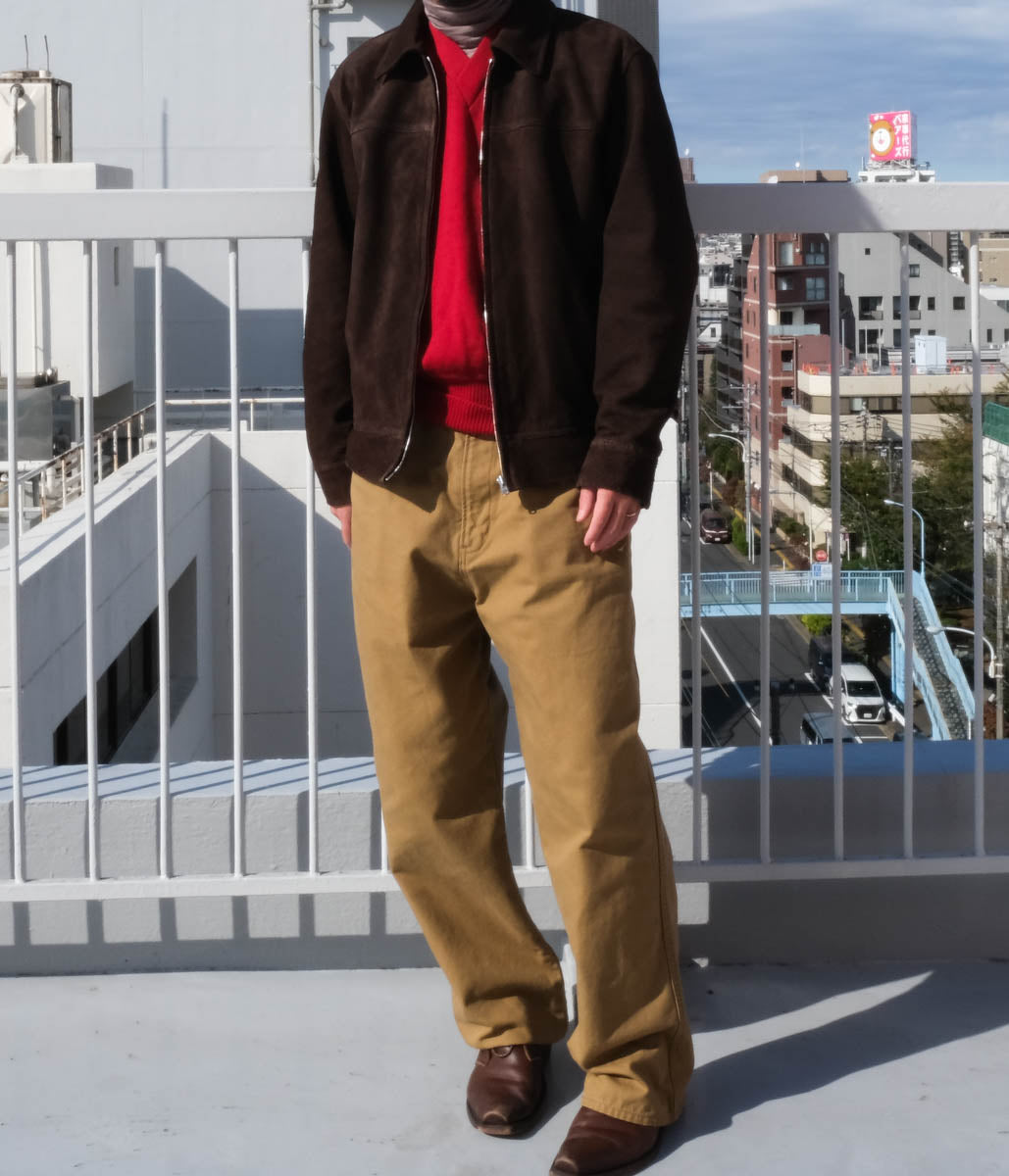 インナーにスウェットやニットを入れやすく、アウターのインナーにもなるちょうど良いアイテム。