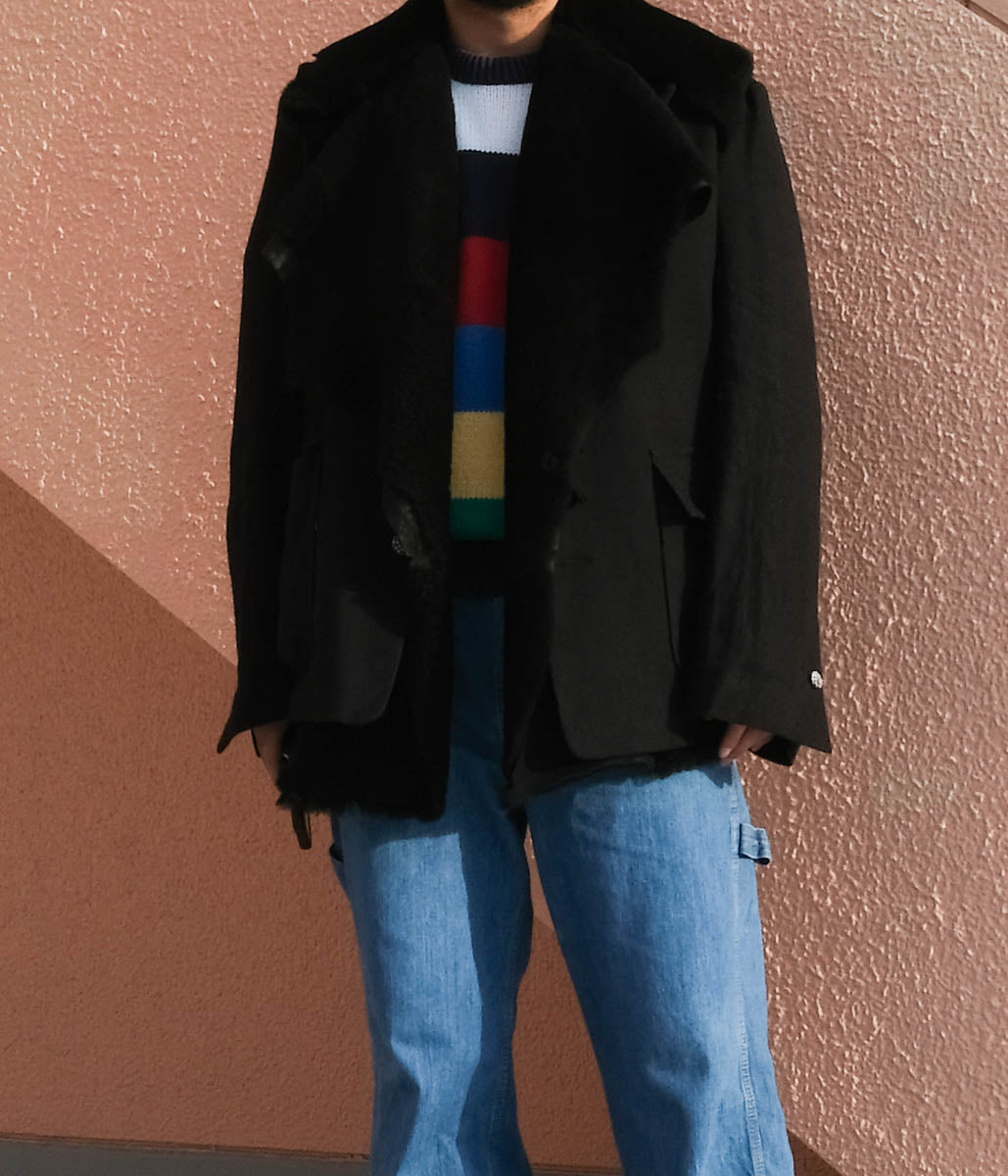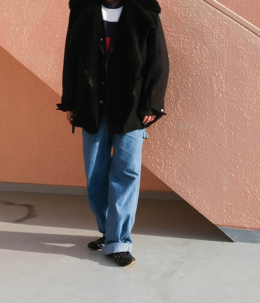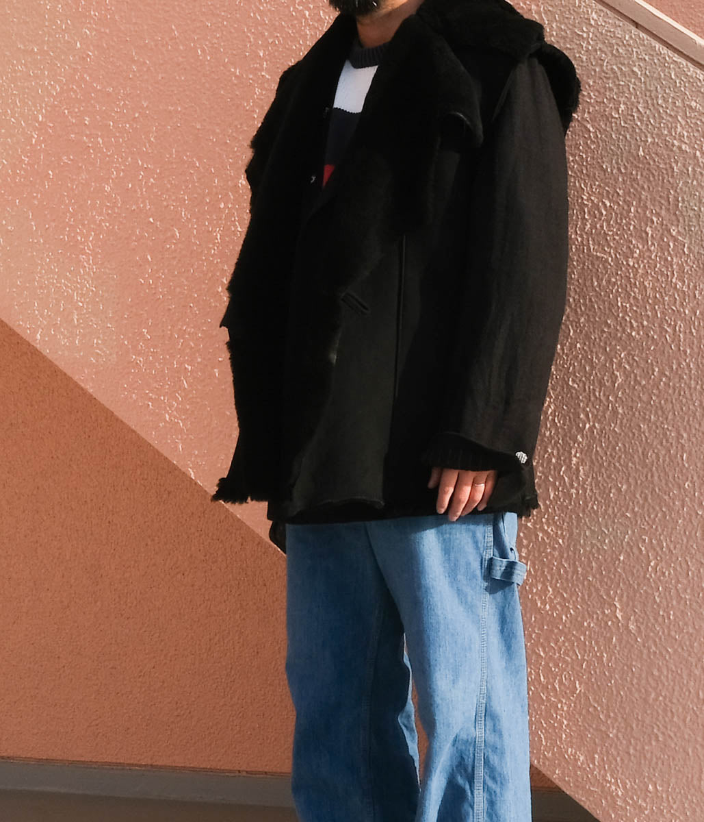 世界最高峰のムートンを用いており、羊毛の密度や質感、服の表面となる裏革のマットな質感も非常にしなやか。